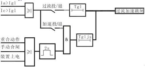 過流加速保護(hù)適用于當(dāng)手合或保護(hù)重合于故障線路時(shí),可加速跳閘,防止故障擴(kuò)大。加速保護(hù)只在合閘2s內(nèi)起作用,合閘2s后加速功能自動退出。對于母聯(lián)的充電保護(hù)只需將加速壓板投入,整定過電流定值及加速時(shí)間定值。